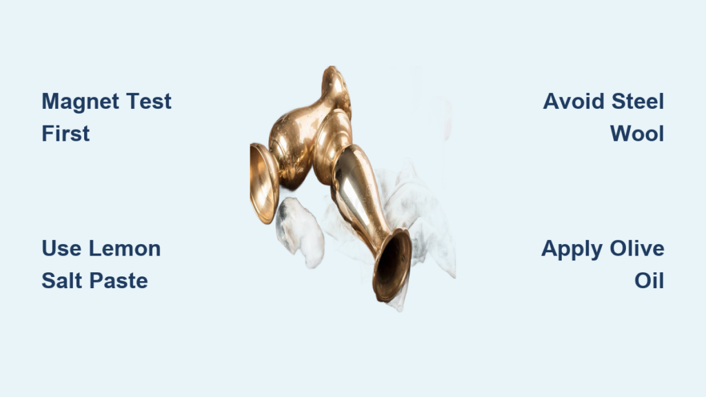 Grab a standard refrigerator magnet and hold it against your brass item’s surface. If the magnet falls away cleanly, you’re working with solid brass that can handle more aggressive cleaning techniques. However, if the magnet sticks at all, you’re dealing with brass-plated steel or iron that requires gentler treatment. Never use abrasive methods like salt scrubs on plated items—you’ll permanently damage the thin brass layer and expose the underlying metal, ruining the piece’s appearance and value.