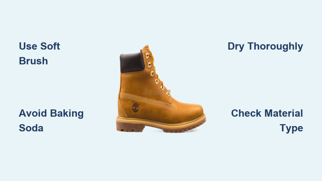 Never start with liquid—Timberland’s warranty documentation (when available) consistently emphasizes keeping boots as dry as possible during cleaning.
