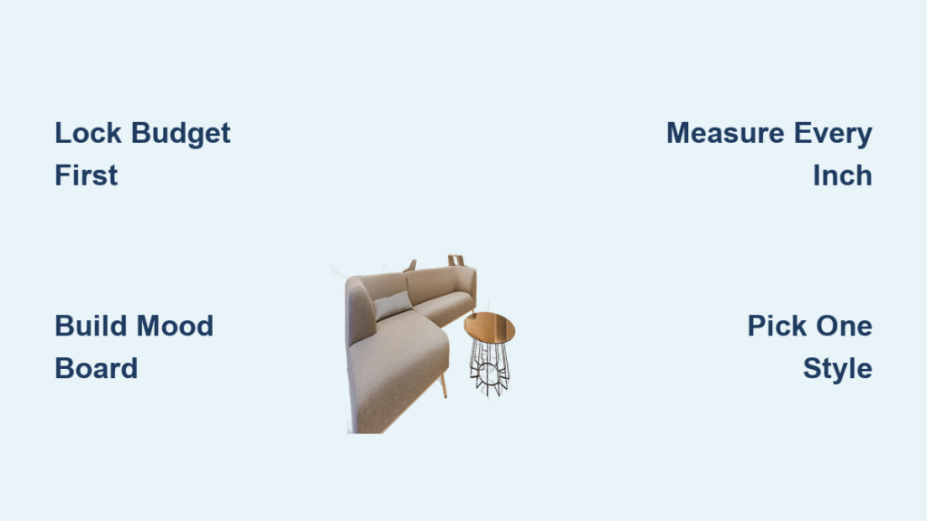 • Real-world example: A client blew $3,200 on a rug before realizing it left no room for seating. Stick to your spreadsheet’s “must-have” column first.