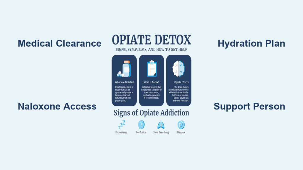 Home-based opiate detox requires careful preparation, not willpower alone. With proper medical consultation and support systems, you can navigate withdrawal symptoms using proven techniques. This guide walks you through every phase of how to detox from opiates at home safely, from pre-detox planning to managing peak symptoms. You’ll learn exactly when home detox works, how to recognize medical emergencies, and why naloxone access is non-negotiable.