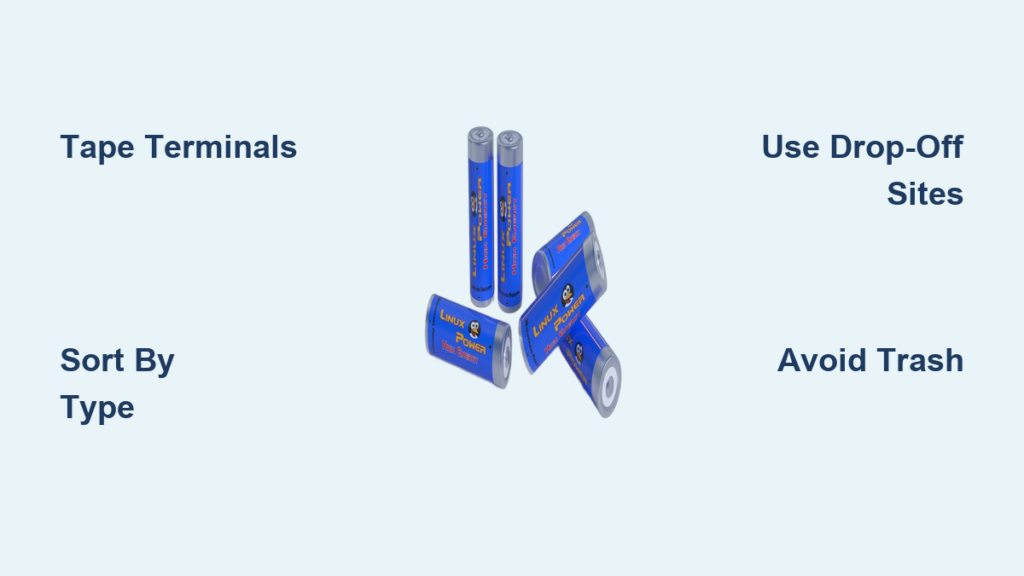 Clear Your Hazard Zone Today: Grab that kitchen drawer right now. Sort batteries into three piles: single-use (AA/AAA), button cells, and rechargeables. Tape every terminal using the electrical tape method described—this takes under 5 minutes. Visit Call2Recycle.org with your ZIP code; 92% of users find a drop-off within 5 miles. Most major retailers accept your sorted batteries during business hours with no appointment. By completing this process before dinner, you’ll eliminate a fire hazard, protect local water sources, and join the 175 million pounds of batteries properly recycled annually. Remember: Proper disposal isn’t just eco-friendly—it’s how to dispose of batteries at home without risking your family’s safety or your community’s infrastructure.