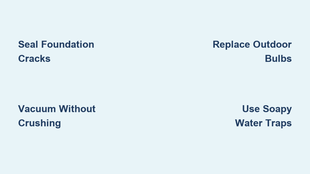 Replace all white bulbs with yellow bug-repellent LEDs (590 nm wavelength). This reduces attraction by 60% compared to standard LEDs.