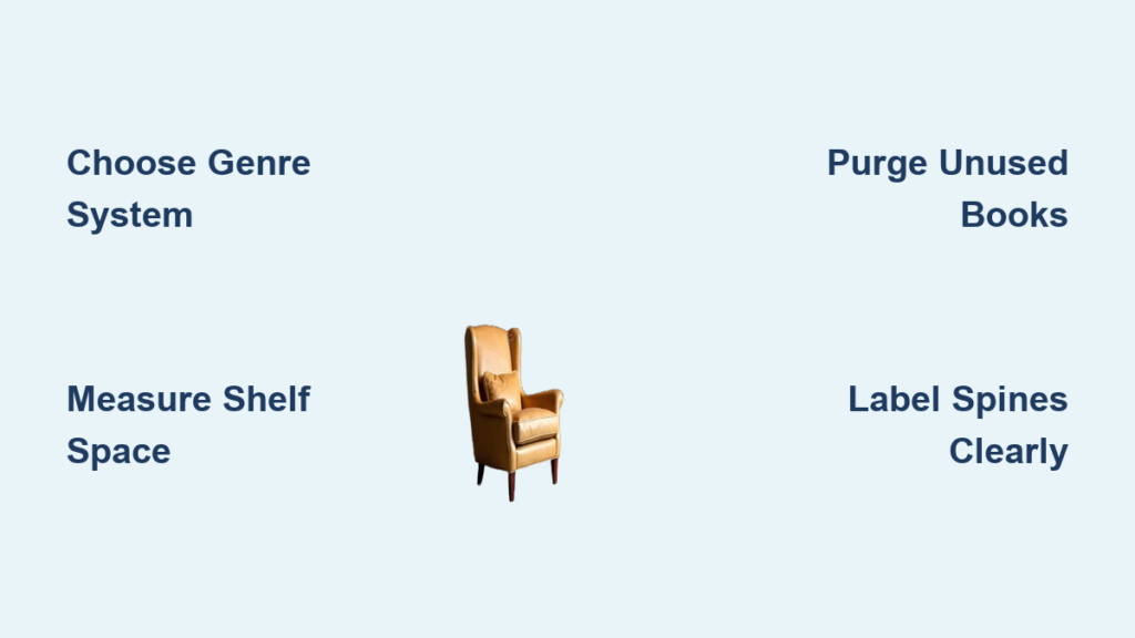 Start your home library organization project by removing books you’ll never reread. Apply the one-year rule: if you haven’t opened it in 12 months and won’t reference it again, donate or sell it. This prevents organizing clutter rather than valued books. According to library science experts, most people keep 30-40% of books they’ll never read again—removing these creates breathing room in your collection.