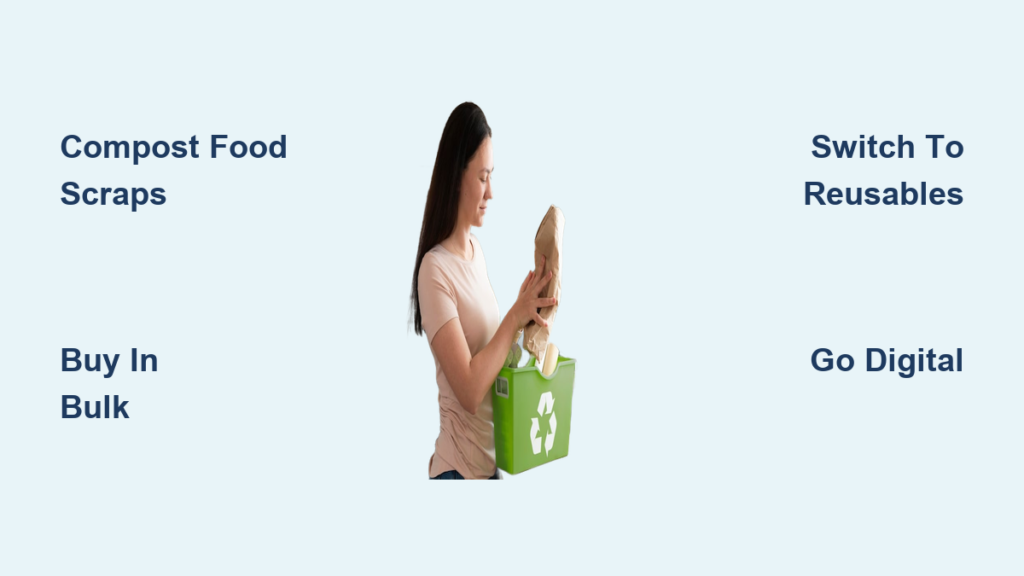 This isn’t about perfection—it’s about progress. Within weeks, you’ll stop creating 71 upstream trash cans for every can of household waste. We’ll dive into proven tactics that target the real culprits: food scraps (30% of waste), packaging (25%), and paper products (20%). Start with one strategy today, and by month’s end, you’ll see tangible results in your overflowing bins.