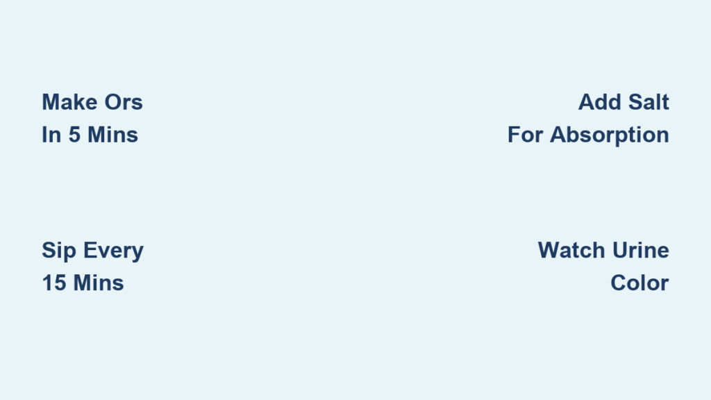 Final Note: You’ve just learned hospital-grade rehydration using kitchen tools—but severe cases need IV fluids. If dizziness persists after 2 hours of precise ORS sipping, seek emergency care. For future prevention, keep ORS ingredients stocked (sugar/salt never expire) and track urine color daily. Within 4 hours of starting this protocol, your mouth will feel moist, your headache will lift, and your urine will run clear. Stay ahead of thirst: sip 4 ounces every 30 minutes during illness or heat, not when symptoms hit. Your body recovers faster than you think—if you give it the exact tools it needs.