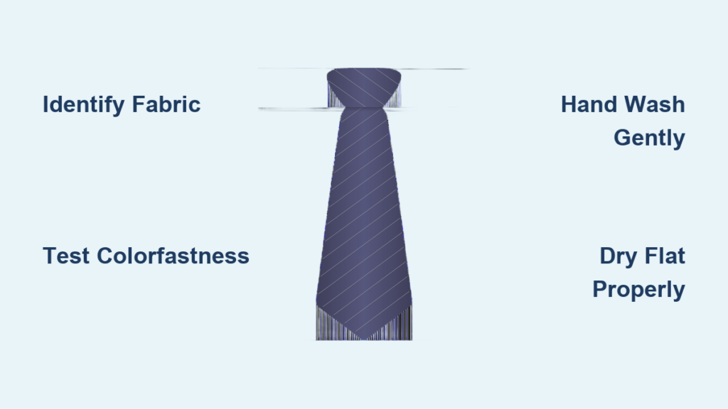 Find the care label first—usually sewn into the narrow end. Even if it says “hand wash,” test colorfastness on the tie’s back near the keeper loop. Dampen a white cotton cloth with cool water, then gently rub an inconspicuous area for 30 seconds. If any dye transfers, stop immediately and head to the dry cleaner. For multicolored patterns, test each color separately as different dyes may have varying degrees of colorfastness. This 30-second test prevents catastrophic color bleeding that ruins your tie.